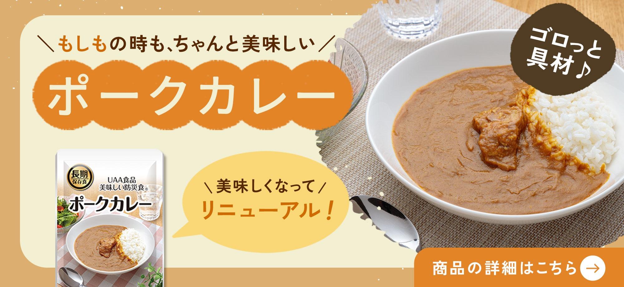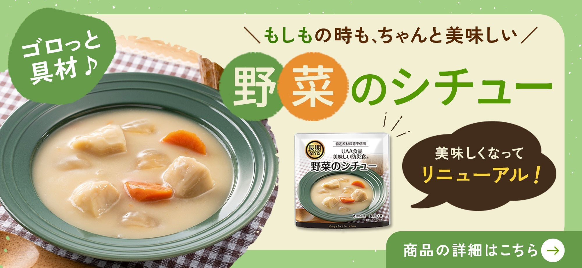 災害時でも普段と変わらない食事ができるように、UAA製法を用いた長期保存可能な食品を開発しました。